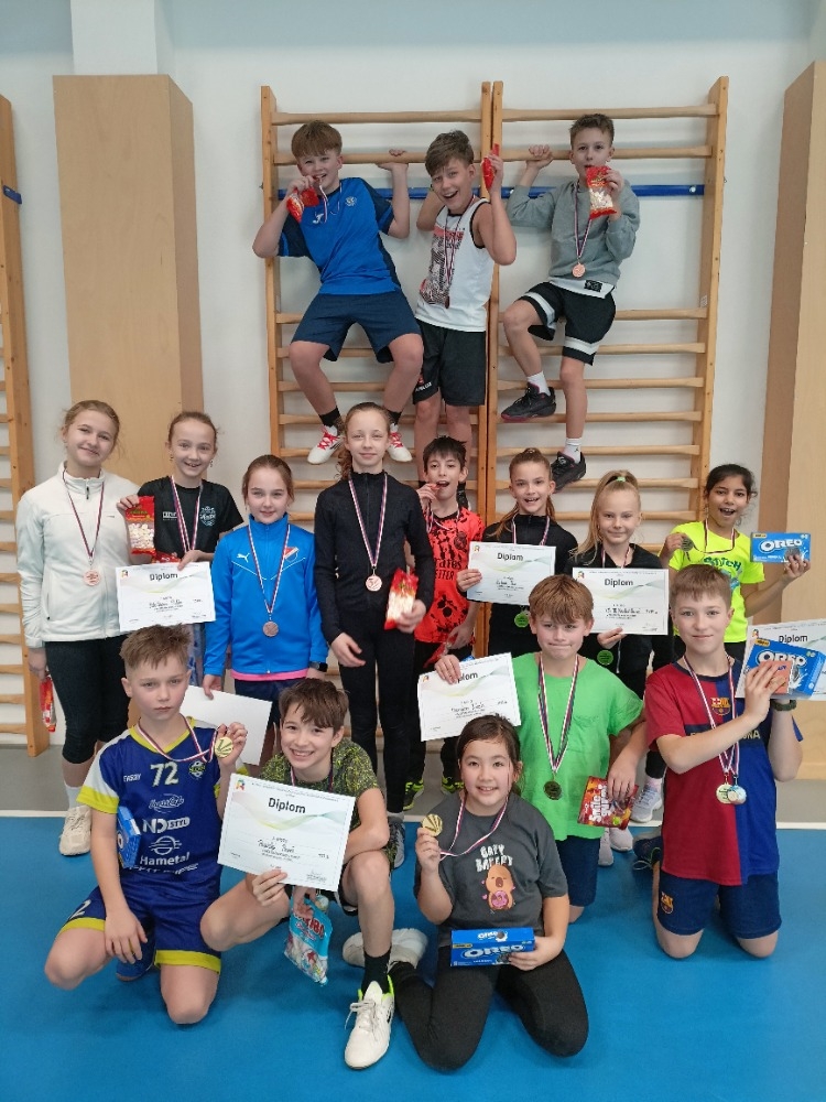 Dne 3.2. jsme pořádali další závod, který se započítává do HLZŠ. V rámci X – boje žáci 4. a 5. tříd absolvují 40 m, skok daleký, člunkový běh a hod medicinbalem. Letos se zúčastnilo 100 dětí ze 7 škol. Obě naše družstva si vedla výborně. Páťáci (Hyblová Adriana, Kolková Karolína, Poláčková Eliška, Zotyková Olivie, Bocharov Bohdan, Hlava Josef, Rapant Daniel, Šafář Radek) obsadili 3. místo. Čtvrťáci (Gargaś Maya, Nguyen Sofie, Szatmariová Julie, Žižková Tea, Gomola Antonín, Přeček Vojtěch, Rosický Pavel, Uhorskai Jakub) si vedli ještě lépe, zvítězili a radovali se ze zlaté medaile. Také v jednotlivcích kluci ovládli stupně vítězů – vyhrál Pavel R., 2. místo získal Jakub U. a na 3. příčku se dostal Vojtěch P., stříbro si odnesla Eliška P. a bronzovou medaili získala také Tea Ž. Do první desítky se ještě dostali Eliška P. (4.), Adriana H. (5), Antonín G. (6.), Olivie Z. a Julie S. (7.) Radek Š. (8.).