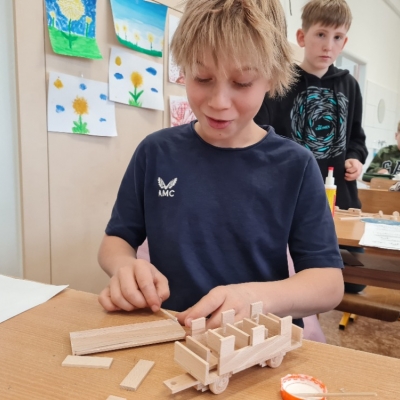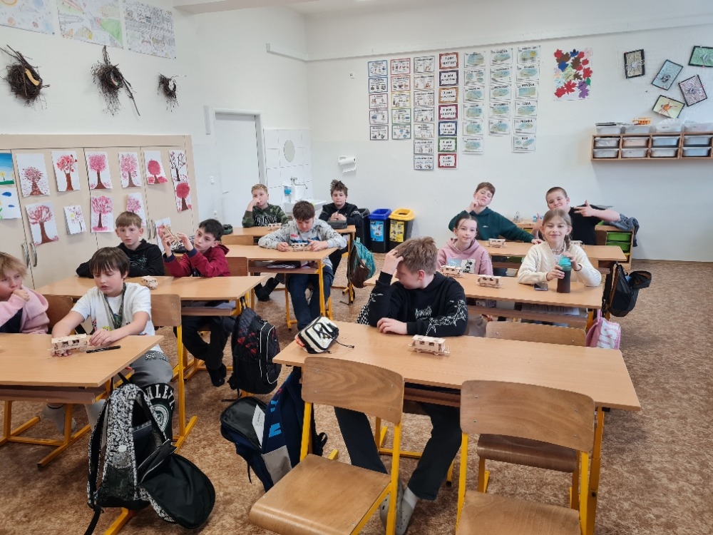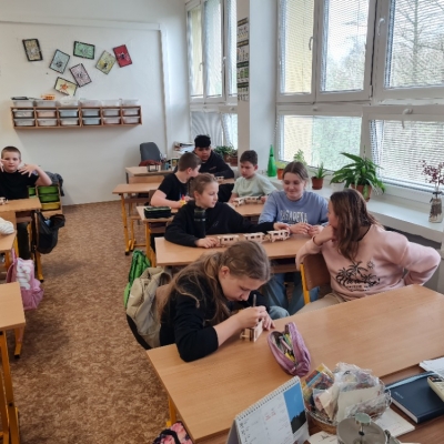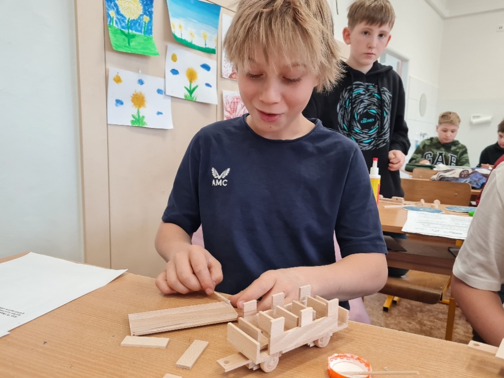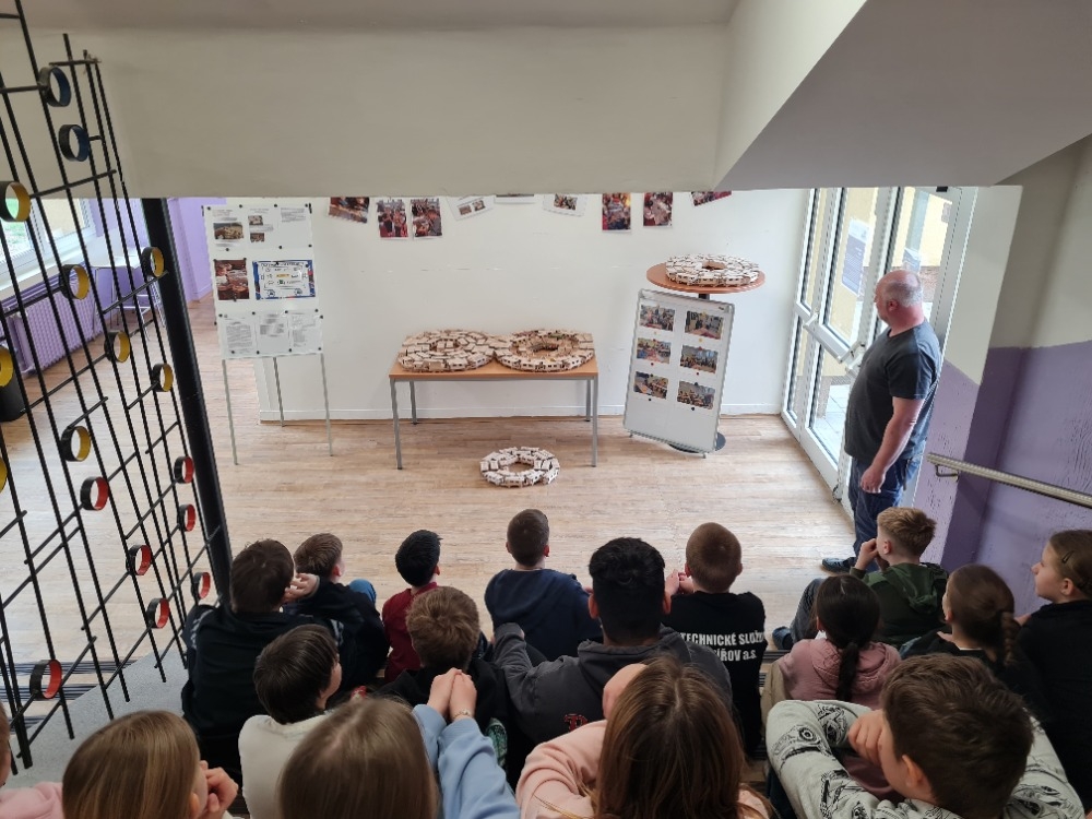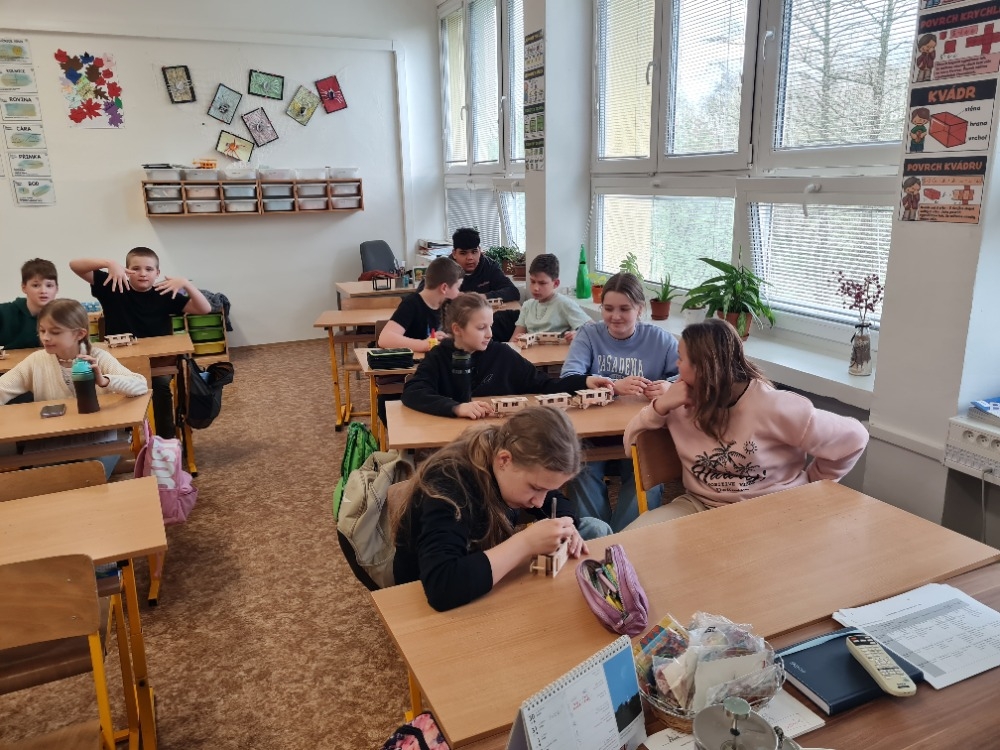 Žáci 5. A se zúčastnili projektového dne s názvem Nekonečný vlak, který byl zaměřen na rozvoj kreativity, spolupráce a jemné motoriky. Každý žák si podle připraveného plánku samostatně vyrobil svůj vagónek. Jednotlivé vagónky se postupně spojovaly, až vznikl symbolický nekonečný vlak. Projekt „Nekonečný vlak“ z lamel vedl pan Samuel Fojt a pro děti byl velkým zážitkem i inspirací. Na úvod se žáci seznámili se světem lokomotiv a vláčků. Povídali si nejen o moderních strojích, ale i o dnes již romantických parních lokomotivách a o tom, jak se lokomotivy v minulosti pojmenovávaly. Výsledkem společné práce je originální vlak, jehož lokomotiva nese jméno Havířka a celý vlak dostal název Kudeřice.Zpět